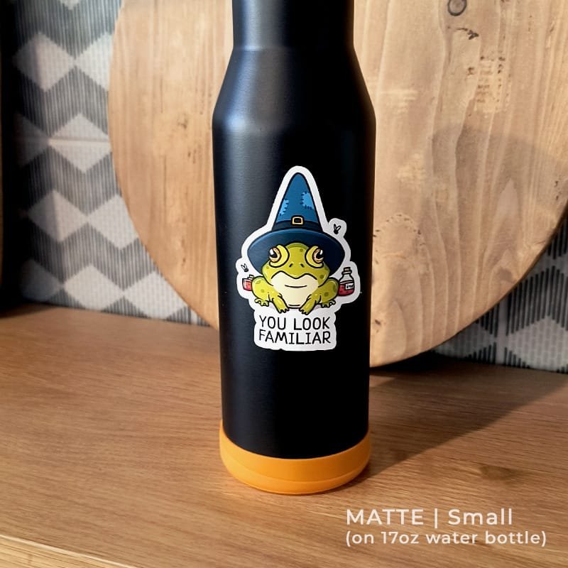Get your pun on with this wizard frog familiar vinyl sticker. Stick it on your water bottle! Stick it on your notebook! Stick it outside!
